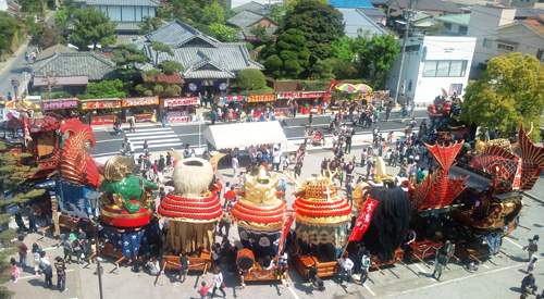14台の曳山の後ろ姿です。