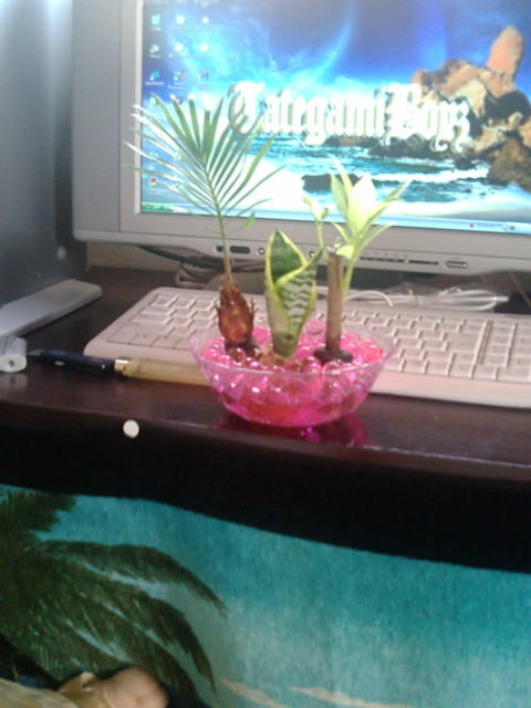 観葉植物を入れたらて少しみずを入れた完成です。。